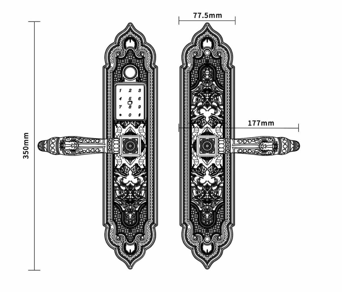 - Kích thước khóa: 77.5x350mm