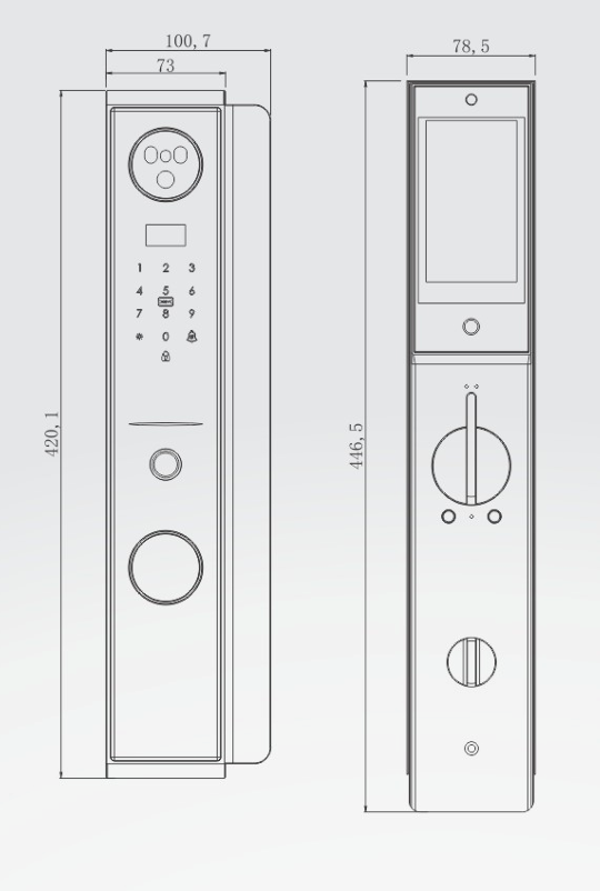 - Kassler KL-567 CNC có thiết kế thanh mảnh với kích thước thân khóa ngoài chỉ R720 x C360 x D25 mm, lý tưởng cho các dòng cửa có kích thước trung bình đến nhỏ. Phần thân khóa được chế tạo từ hợp kim chắc chắn kết hợp nhựa ABS chịu lực, vừa đảm bảo độ bền vừa giảm trọng lượng, phù hợp lắp đặt trên nhiều chất liệu cửa khác nhau.