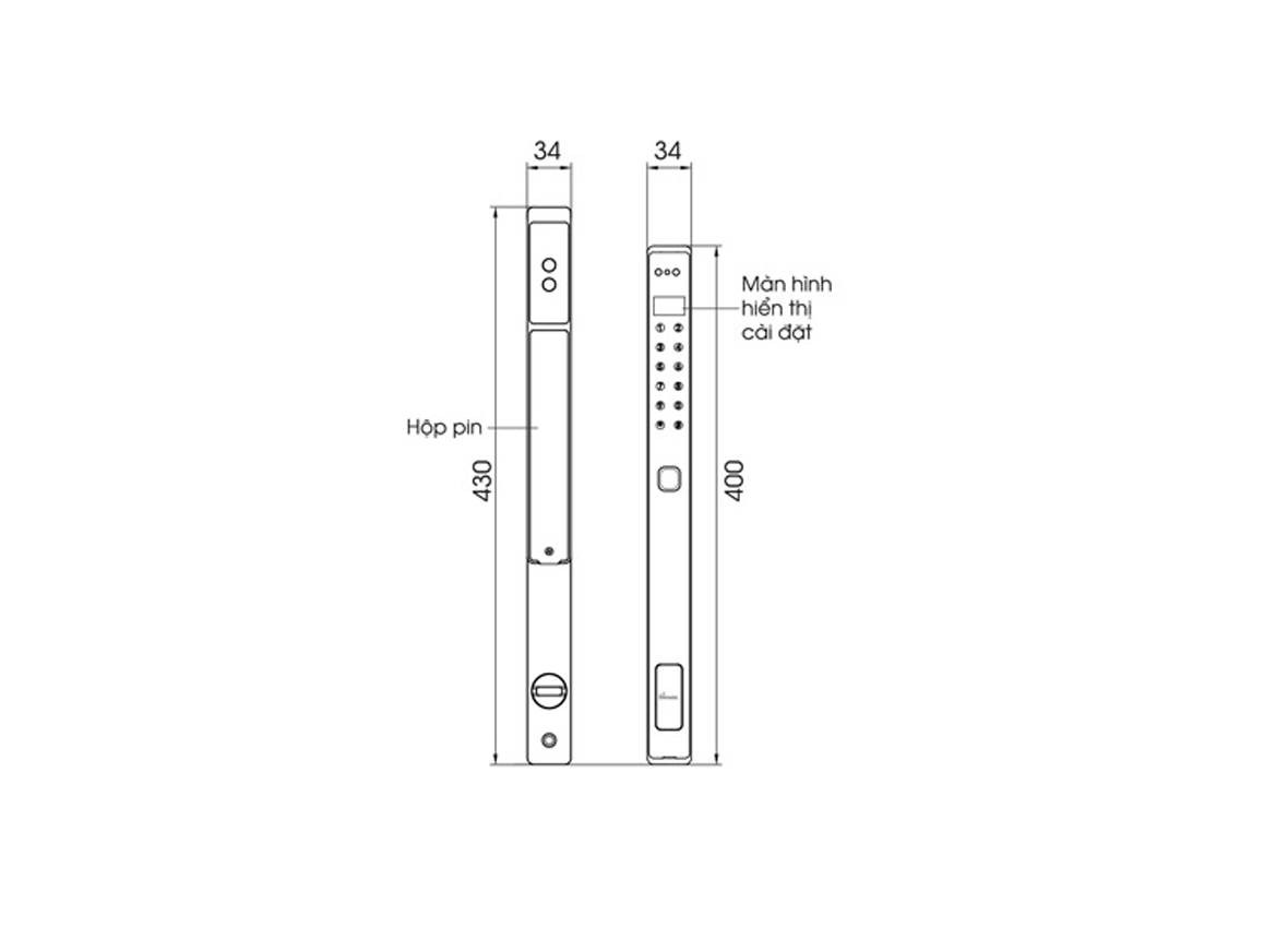 - Kích thước khóa: 34x400 mm