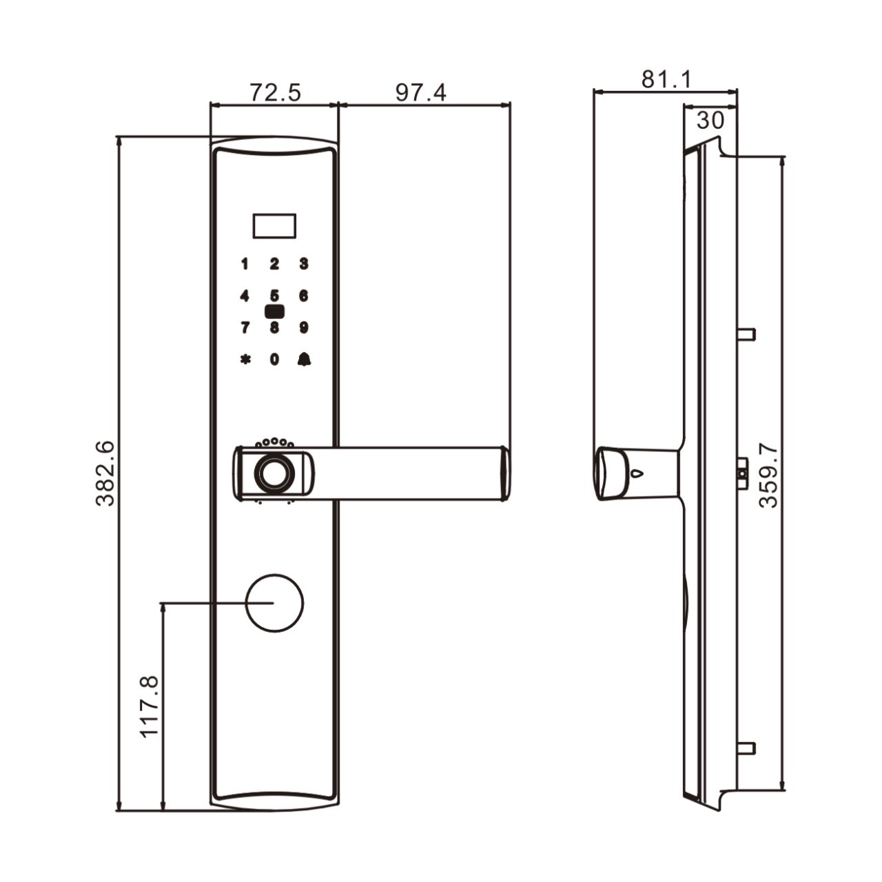 • Chức năng mở khóa: Vân tay, Mật khẩu, Thẻ từ, App wifi, Chìa khóa cơ