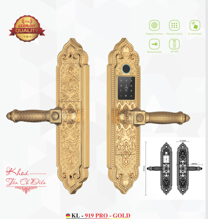+ Vận hành bằng mật mã, vân tay, thẻ từ, chìa khóa cơ, app Ttlock bluetooth