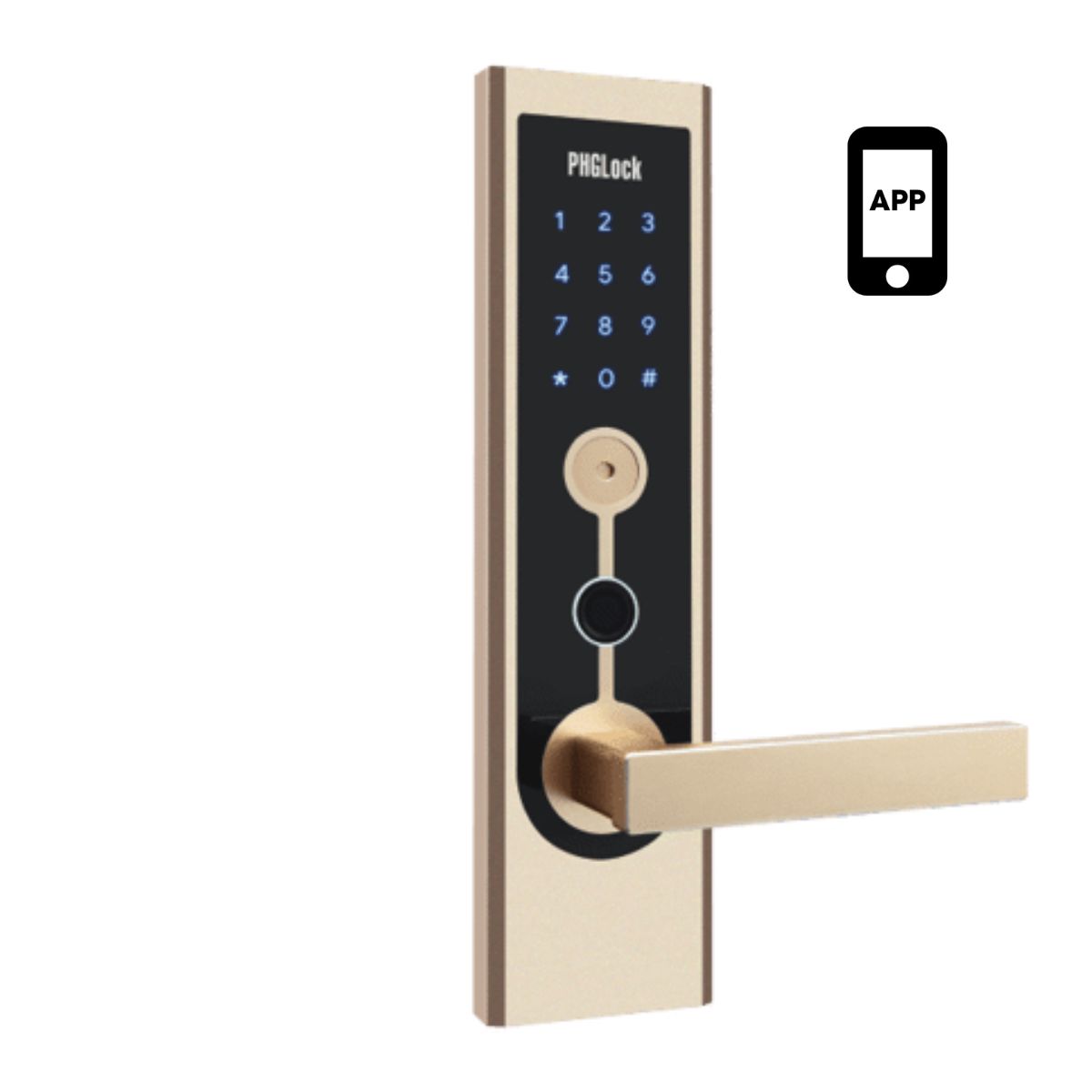- Khóa có APP: Mở khóa bằng APP trên điện thoại, 200 thẻ MI,150 mật mã, 150 vân tay & chìa khóa cơ trong trường hợp khẩn cấp:
