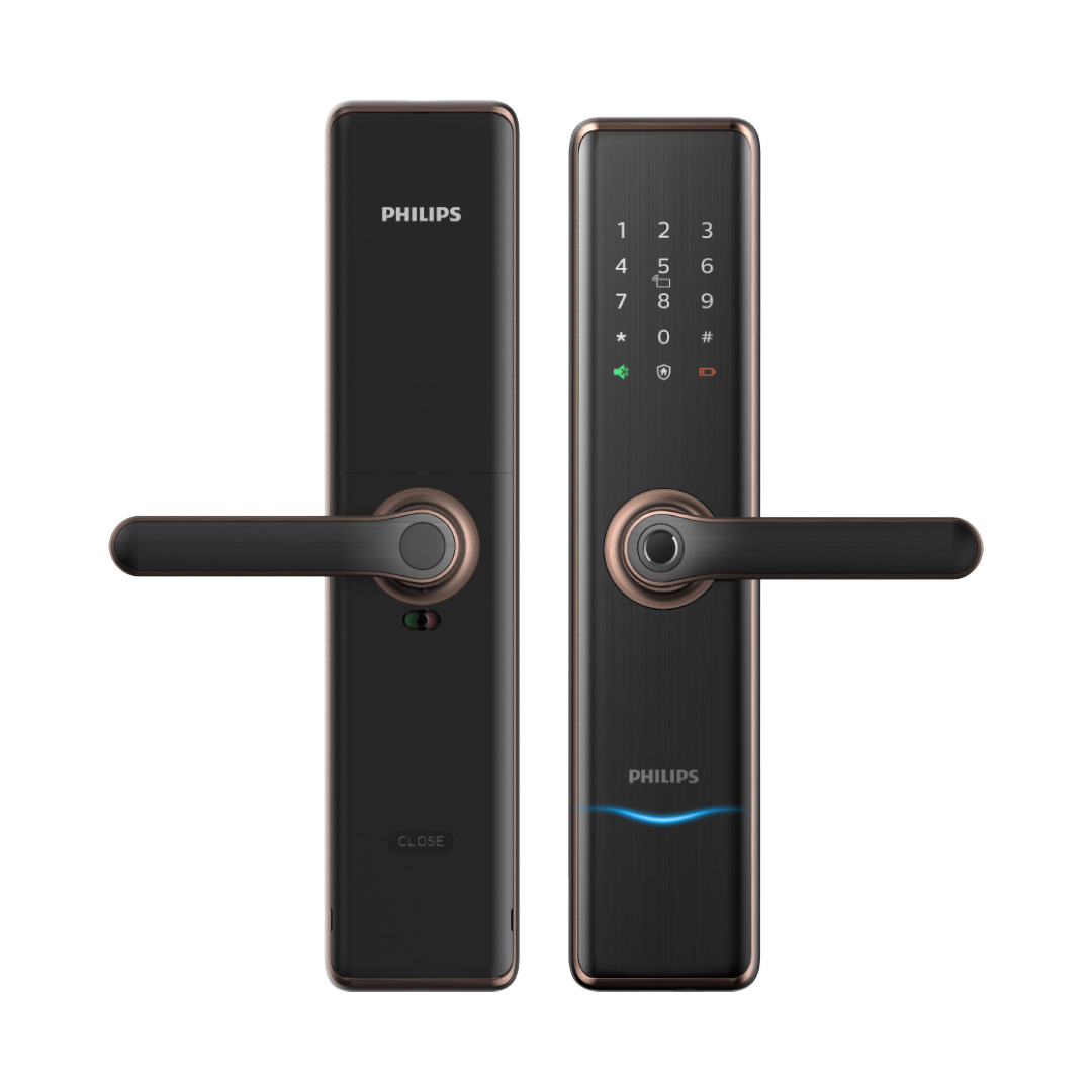 - Mở khóa bằng: vân tay, thẻ từ, mã số, chìa cơ, bluetooth. Có thể mua thêm Philips gateway để đóng/ mở và quản lý khóa từ bất kì đâu trên thế giới qua wifi/ 4G. Thêm điều khiển từ xa (remote) nếu cần