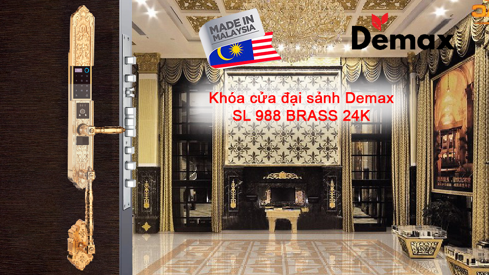 7. Khóa cửa đại sảnh Demax SL 988 BRASS 24K