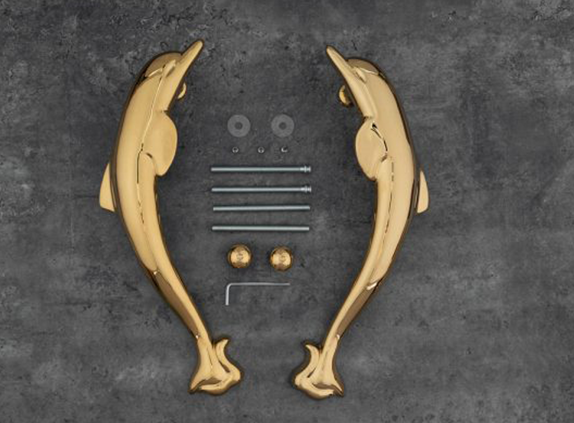 Hình tượng cá heo (Dolphin) đại diện cho nước, mang ý nghĩa hạnh phúc, sự bình tĩnh, tự tin. Cá heo là loài vật rất khôn ngoan, khéo léo nhưng cũng đầy lòng dũng cảm, trí tuệ và sự tích cực. Đây là hình tượng được các gia chủ từ phương đông đến phương tây rất ưa chuộng, bởi lẽ nó tạo được sự cân bằng âm dương, biểu trưng cho sự tốt lành và may mắn, trấn được tà khí, xua chuyện chẳng lành. Chính bởi những ý nghĩa tuyệt vời ấy, chúng tôi đã biến hình tượng những chú cá heo tự do vùng vẫy giữa biển cả trở thành thiết kế chủ đạo của sản phẩm tay nắm khóa cửa DOLPHIN PVD GOLD Huy Hoàng.